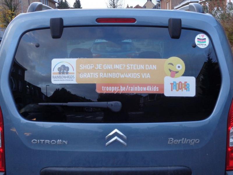 Per online purchase made via our Trooper page at shops as : About you - Auto 5 - Beekse Bergen - Belvilla - Bol.com - Booking.com - BookSpot - Bristol - Center Parcs - Collect&Go - Connections - Coolblue - Disneyland Parijs - Dreamland - Efteling - Etam - Farmaline - Fnac - Hema - Humo - ICI Paris XL - JBC - Krefel - Landal - La Redoute - Lidl - Orange - Plopsa - Sunparks - Torfs - Tui.be - Walibi - Vakantie veilingen - Zeb - Zeeman ... an average of 5% goes to Rainbow4Kids.
